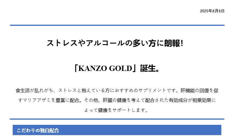 ストレスやアルコールの多い方に朗報! 「KANZO GOLD」誕生。
